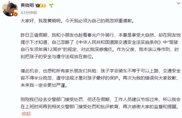 也就是说,黄晓明带儿子骑车上路,已经涉嫌违法了。