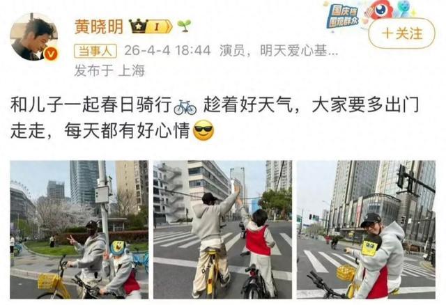 4月4日,黄晓明本想趁着好天气带着儿子小海绵一起去骑车游玩,还顺便拍了几张照片发到了网上。