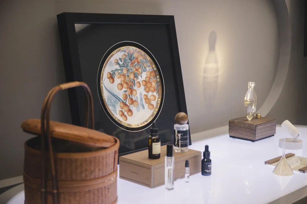 许珺茹跟父亲许恩福一起创作了许多作品,既有传统的也有创新的款式。比如,合作作品《拾遗·荔香》在2024年第九届广东省非物质文化遗产创意设计大赛中获优秀奖。这是一件环境艺术装置,以粤曲《荔枝颂》为创作灵感,用广彩“堆金积玉”的强烈色彩视觉冲击为基底,调制出岭南特有的荔枝香气,配合气味音响装置,营造出嗅觉、听觉与视觉三重艺术体验,展现岭南文化的独特韵味,传达岭南生活的文化底蕴。