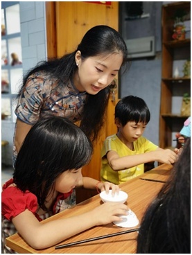 2006年起,许珺茹和父亲一起推动“广彩进校园、进社区”项目。“现在基本形成完整的教学体系,并协助申报广彩非遗传承基地。只有更多人参与进来,并且将兴趣转化为职业,从中获得认同和价值,广彩才能不断地传承下去。”跟父亲相比,许珺茹更专注于广彩的教学和体验课,她创办了自己的工作室,里面有很多小朋友的广彩作品。